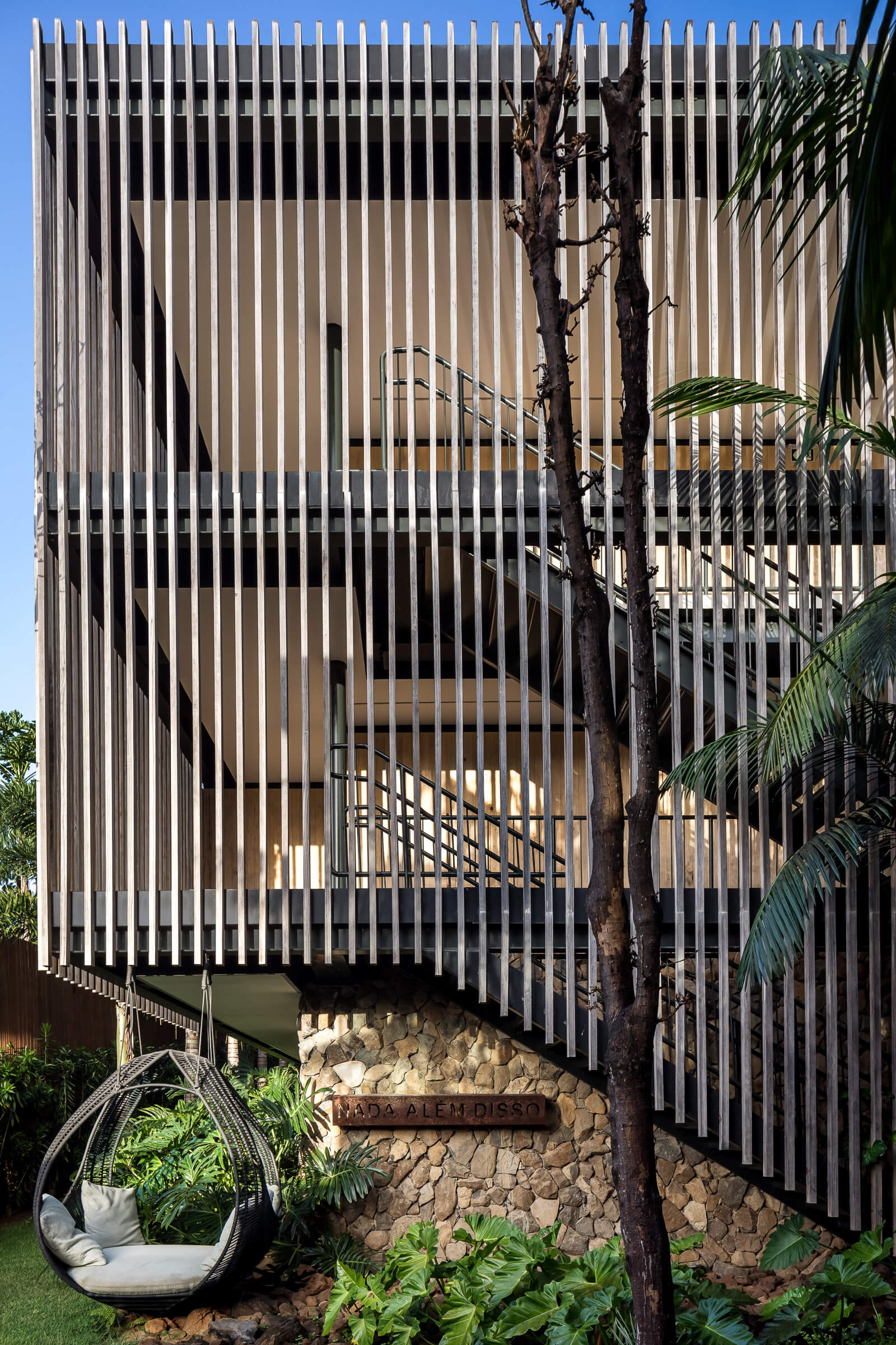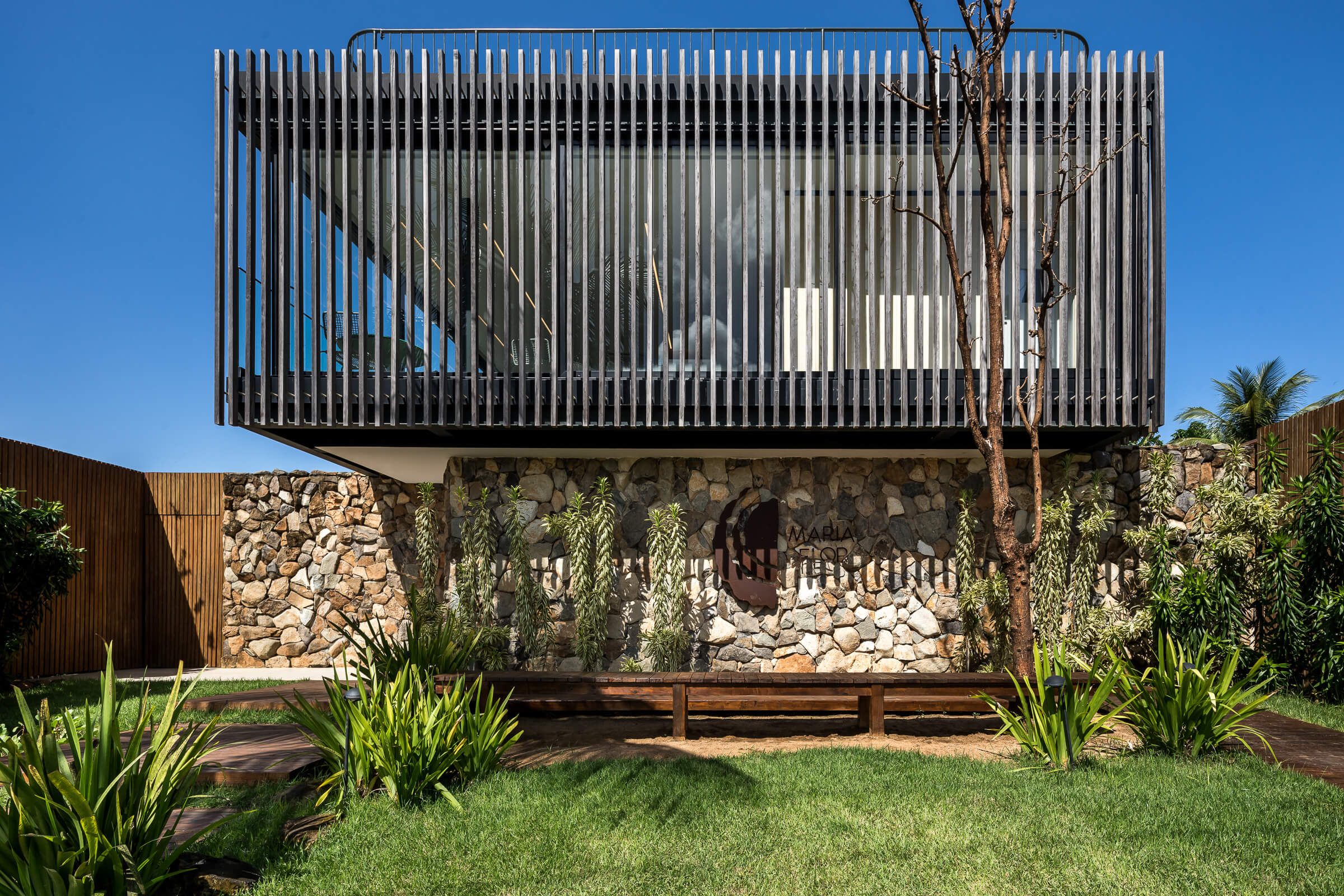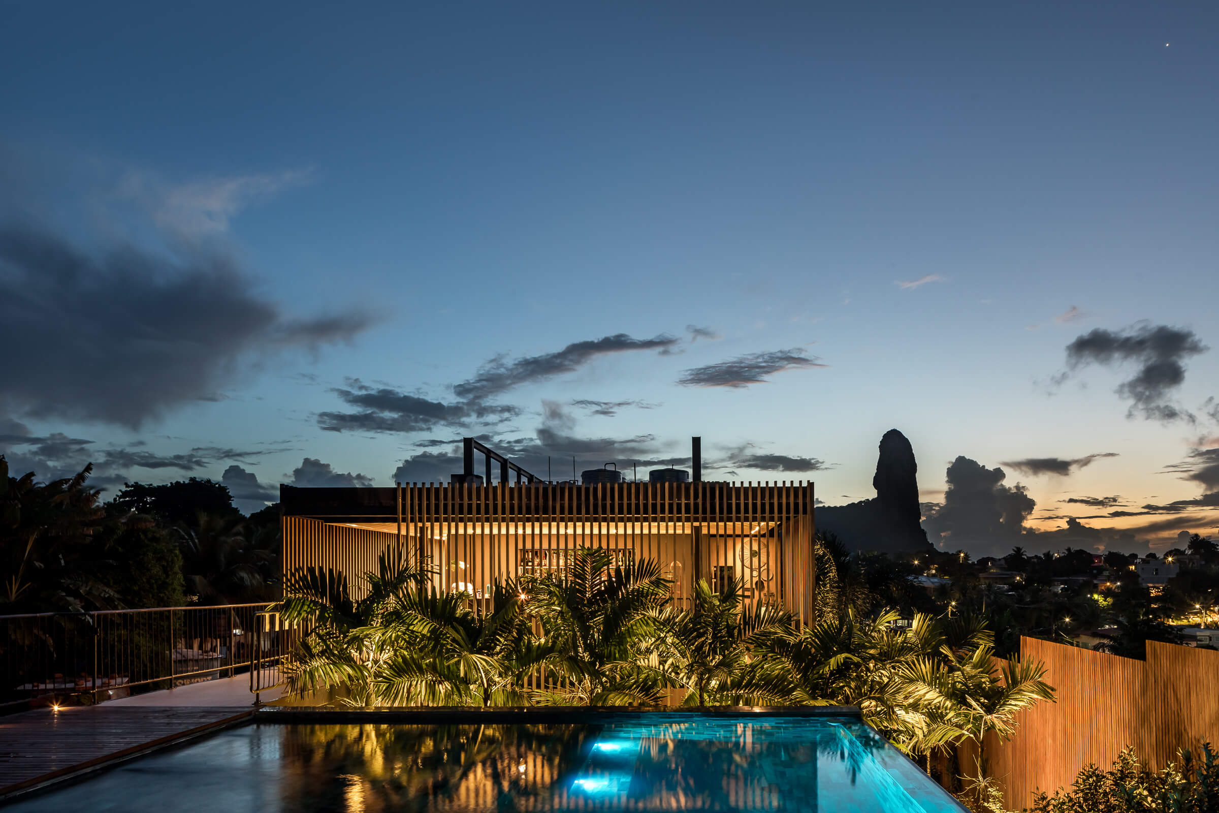 Um dos mais elegantes hotéis de Fernando de Noronha, a Maria Flor se destaca pela sua arquitetura aberta a natureza. Accoya naturalmente escolhida por conta do desempenho único em relação ao clima extremante agressivo da região.
