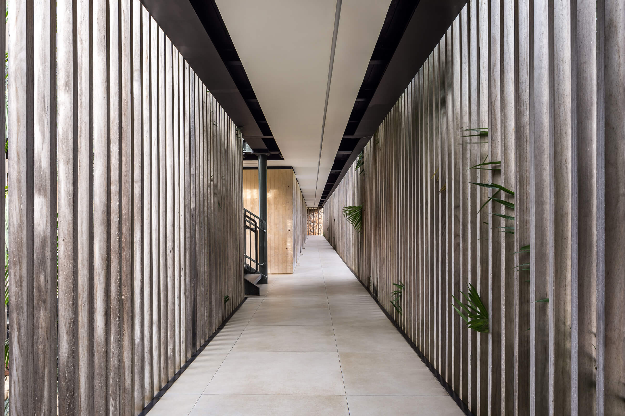 Brises da fachada e painéis de acesso aos quartos